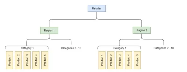 - Bottom Level (Product Category): Within each store, certain product categories may benefit more from a campaign than others.