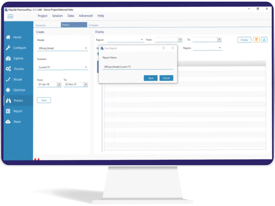 MassTer’s Predict module allows you to evaluate the sales impact to be generated from a specific plan (scenario) based on the results of a saved model. You can evaluate different plans related to the same model and compare them.