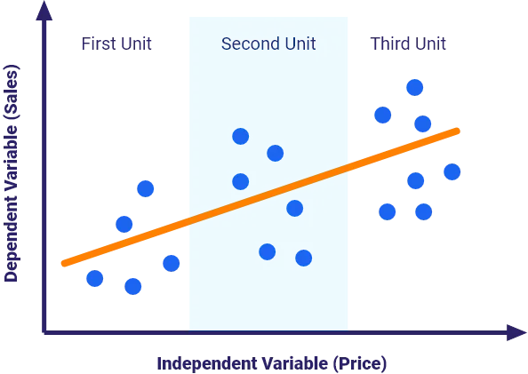 The following example depicts the relationship between price and sales at the level of different regions. If each region is considered separately, it is clear that when the price increases, sales decrease, and if the price decreases, sales increase.