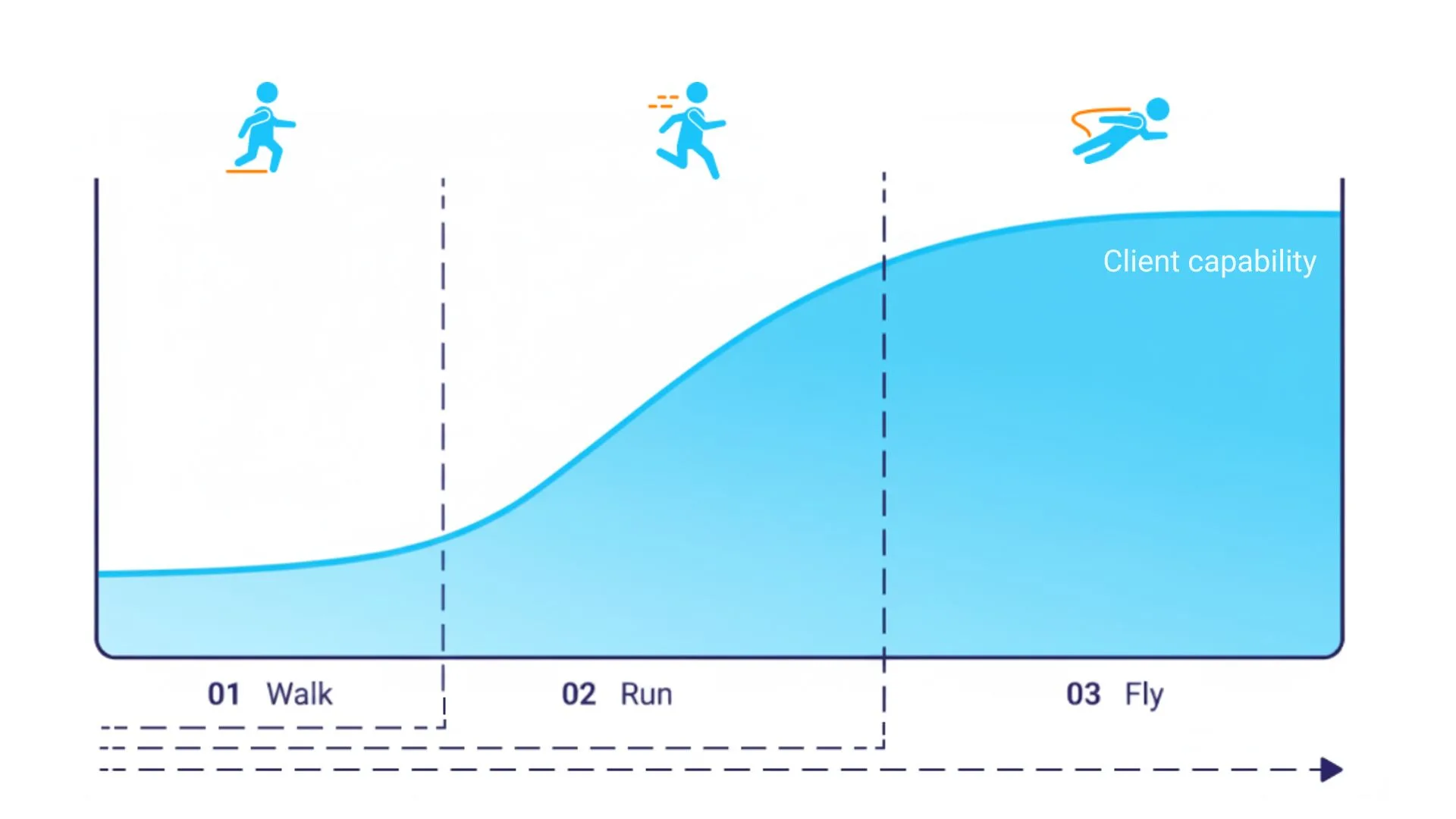 At MASS Analytics, we guide our clients through a structured progression to fully harness the power of Marketing Mix Modeling (MMM). Our Walk, Run, Fly approach ensures a smooth, scalable transition from fully managed services to an industrialised, global MMM capability.